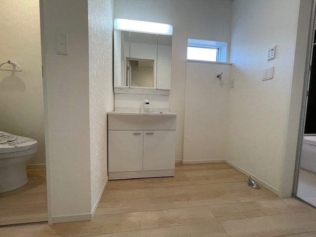 | 設備 | 設計住宅性能評価書、建設住宅性能評価書(新築時)、市街地が近い、整形地、平坦地、2階建、LDK15畳以上、和室、スマートキー、床下収納、システムキッチン、対面式キッチン、IHクッキングヒーター、浄水器、浴室乾燥機、浴室1坪以上、オートバス、浴室に窓、シャワー付洗面化粧台、トイレ2ヶ所、温水洗浄便座、ワイドバルコニー、庭、複層ガラス、駐車3台以上可、セキュリティ充実、TVモニタ付インターホン、即引渡可 | ||