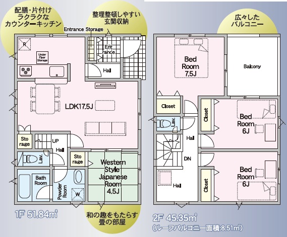 | 設備 | 設計住宅性能評価書、建設住宅性能評価書(新築時)、市街地が近い、整形地、平坦地、2階建、LDK15畳以上、和室、スマートキー、床下収納、システムキッチン、対面式キッチン、IHクッキングヒーター、浄水器、浴室乾燥機、浴室1坪以上、オートバス、浴室に窓、シャワー付洗面化粧台、トイレ2ヶ所、温水洗浄便座、ワイドバルコニー、庭、複層ガラス、駐車3台以上可、セキュリティ充実、TVモニタ付インターホン、即引渡可 | ||