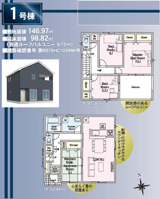 設備 設計住宅性能評価書、建設住宅性能評価書(新築時)、市街地が近い、角地、整形地、平坦地、2階建、LDK15畳以上、和室、スマートキー、床下収納、システムキッチン、対面式キッチン、IHクッキングヒーター、浄水器、浴室乾燥機、浴室1坪以上、オートバス、浴室に窓、シャワー付洗面化粧台、トイレ2ヶ所、温水洗浄便座、ワイドバルコニー、庭、複層ガラス、駐車3台以上可、セキュリティ充実、TVモニタ付インターホン、即引渡可