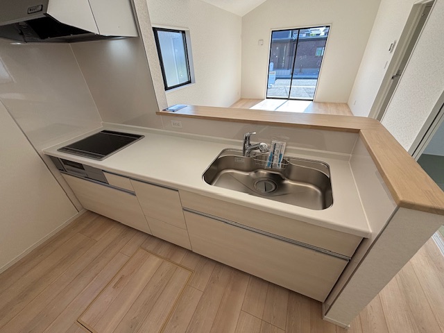 | 設備 | 設計住宅性能評価書、建設住宅性能評価書(新築時)、市街地が近い、前道6m以上、整形地、平坦地、南向き、陽当り良好、LDK15畳以上、和室、スマートキー、床下収納、システムキッチン、対面式キッチン、IHクッキングヒーター、浄水器、浴室乾燥機、浴室1坪以上、オートバス、浴室に窓、シャワー付洗面化粧台、トイレ2ヶ所、温水洗浄便座、ワイドバルコニー、庭、複層ガラス、オール電化、駐車3台以上可、EV車充電設備、セキュリティ充実、TVモニタ付インターホン、即引渡可 | ||