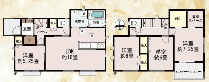 | 設備 | 設計住宅性能評価書、建設住宅性能評価書(新築時)、整形地、平坦地、2階建、南向き、陽当り良好、LDK15畳以上、全居室収納、床下収納、システムキッチン、浄水器、浴室乾燥機、浴室1坪以上、オートバス、浴室に窓、シャワー付洗面化粧台、トイレ2ヶ所、温水洗浄便座、節水型トイレ、省エネ給湯器、複層ガラス、駐車3台以上可、TVモニタ付インターホン、即引渡可、都市ガス | ||