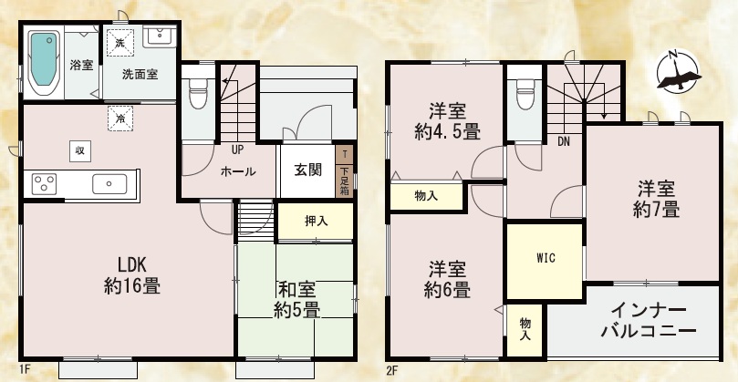 | 設備 | 設計住宅性能評価書、建設住宅性能評価書(新築時)、市街地が近い、前道6m以上、整形地、平坦地、2階建、LDK15畳以上、和室、ウォークインクローゼット、システムキッチン、対面式キッチン、浄水器、浴室乾燥機、浴室1坪以上、オートバス、浴室に窓、シャワー付洗面化粧台、トイレ2ヶ所、温水洗浄便座、庭、複層ガラス、駐車2台可、TVモニタ付インターホン、即引渡可、都市ガス | ||