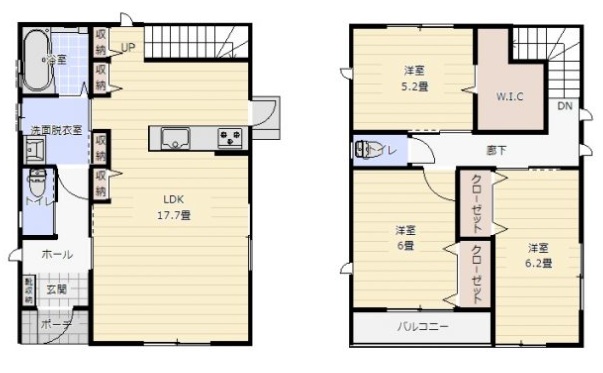 MAEMURAダンパー(耐震×制震)、(ミラバス・ミラブル×マエムラ)MAEMURA-BATH、MAEMURA・BLE標準装備!リビングエアコン、2Fトイレ、ウォークインクローゼット付き!1階は広々17.8帖のLDK、2階は3部屋+バルコニー付き!