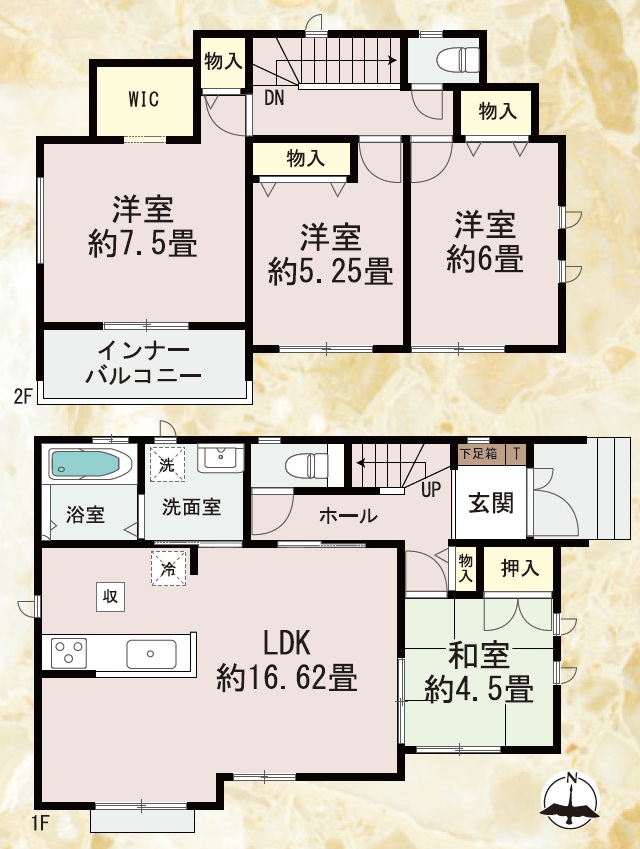 | 設備 | 設計住宅性能評価書、建設住宅性能評価書(新築時)、市街地が近い、前道6m以上、整形地、平坦地、2階建、LDK15畳以上、和室、全居室収納、床下収納、システムキッチン、IHクッキングヒーター、浄水器、浴室乾燥機、浴室1坪以上、オートバス、浴室に窓、シャワー付洗面化粧台、トイレ2ヶ所、温水洗浄便座、南庭、複層ガラス、駐車3台以上可、TVモニタ付インターホン、即引渡可 | ||